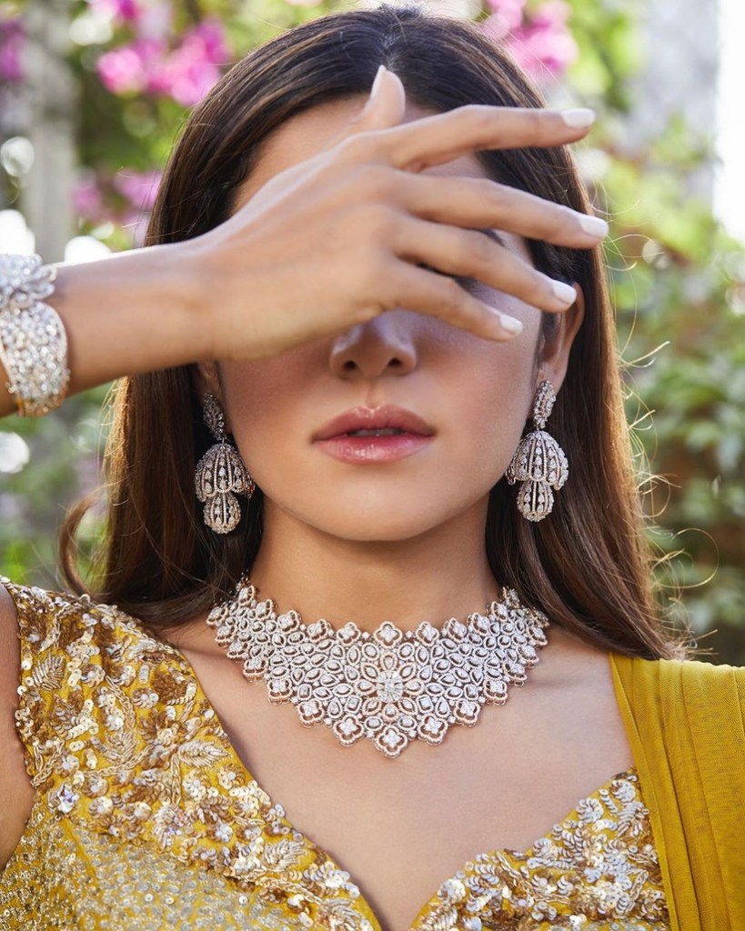In necklaces, we have silver jewellery necklaces. In silver necklaces we have two polishes being rhodium and gold. The rhodium polish has a proper silver polish to it from dainty necklaces that can be worn to any corporate event to fancy ones that can look grand at any festival or occasion. These pieces are the ones that do not come with earrings. The gold polish is the one that has a more traditional look to it, both of these are 925 silver jewellery for women. There are jewellery necklaces that are short to the silver jewellery long necklaces, both being queenly in nature. Best suited on any traditional outfit to complete the look. Silver jewellery sets are the ones that have silver jewellery pendant and the earrings. We have in all sizes and ranges. Silver jewellery earrings – Silver jewellery earrings are always the ones that never go out of trend. We have an enormous variety that always meets the expectations of the buyers. We have and silver earring ranging from studs to silver jewellery jhumkas to baalis to heavy earring. These have a very traditional look to it and inculcate colour stones replicating rubies and emeralds to befit the outfits of our customers. These earrings can be shopped online and can be matched to our necklaces and made into a set if one desires. The silver earrings are the ones with oxidised silver polish, that are chunky and ethnic, again inculcating a couple of fun colours to enhance the jewellery pieces. These are edgy and chic and can look best with traditional and western chic outfits. These oxidised silver jewellery pieces never fade out of trend. These are also the silver jewellery for women.